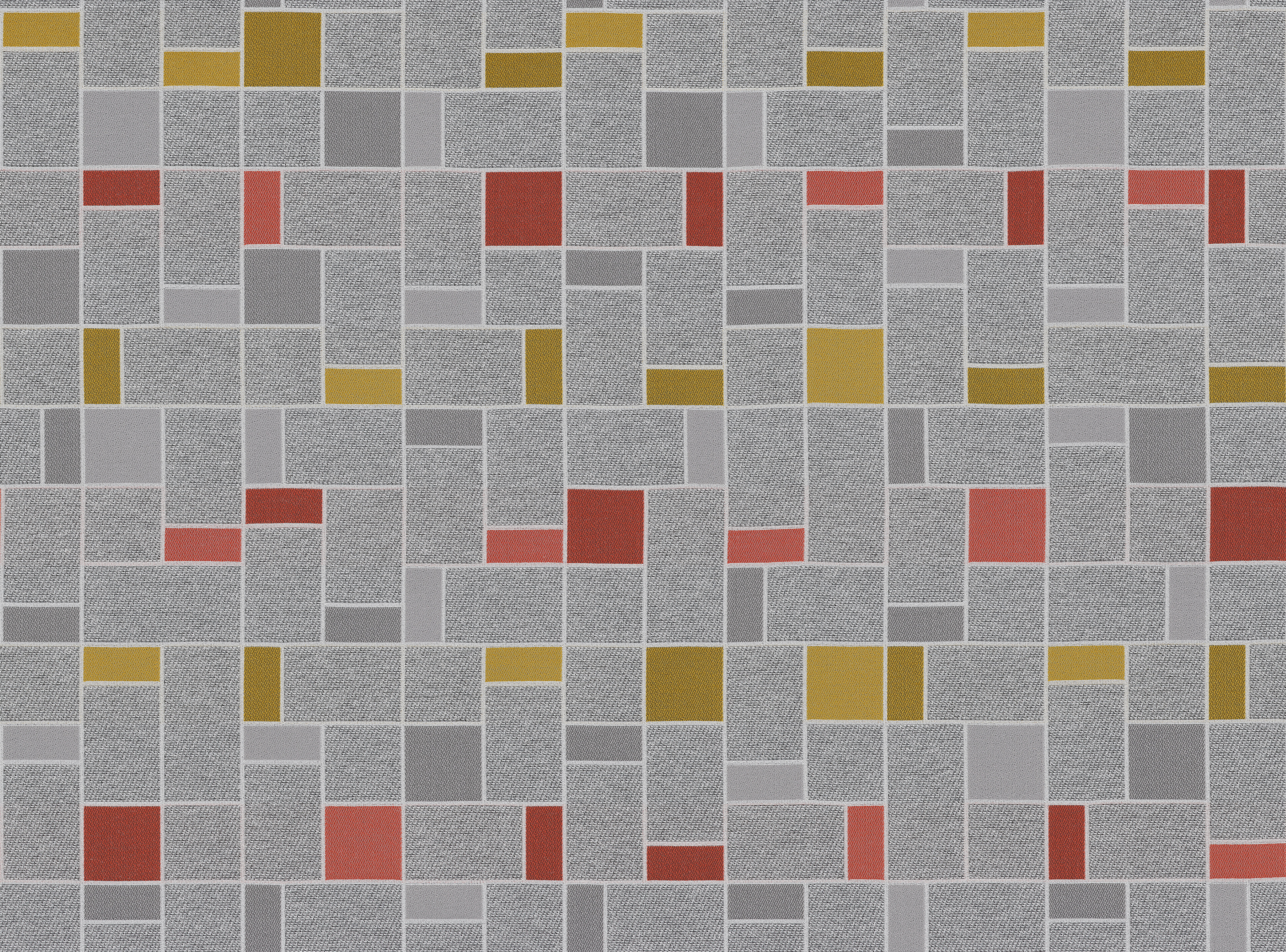 Using simple linework to frame colorful blocks, GLASSWORKS evokes the lead joinery of stained glass. Evoking lightness and transparency, the geometry and composition echo the balanced layout of tatami mats. While the lines are crisp and regular, a subtle heathered yarn used in the ground offers warmth and dynamism to the design.