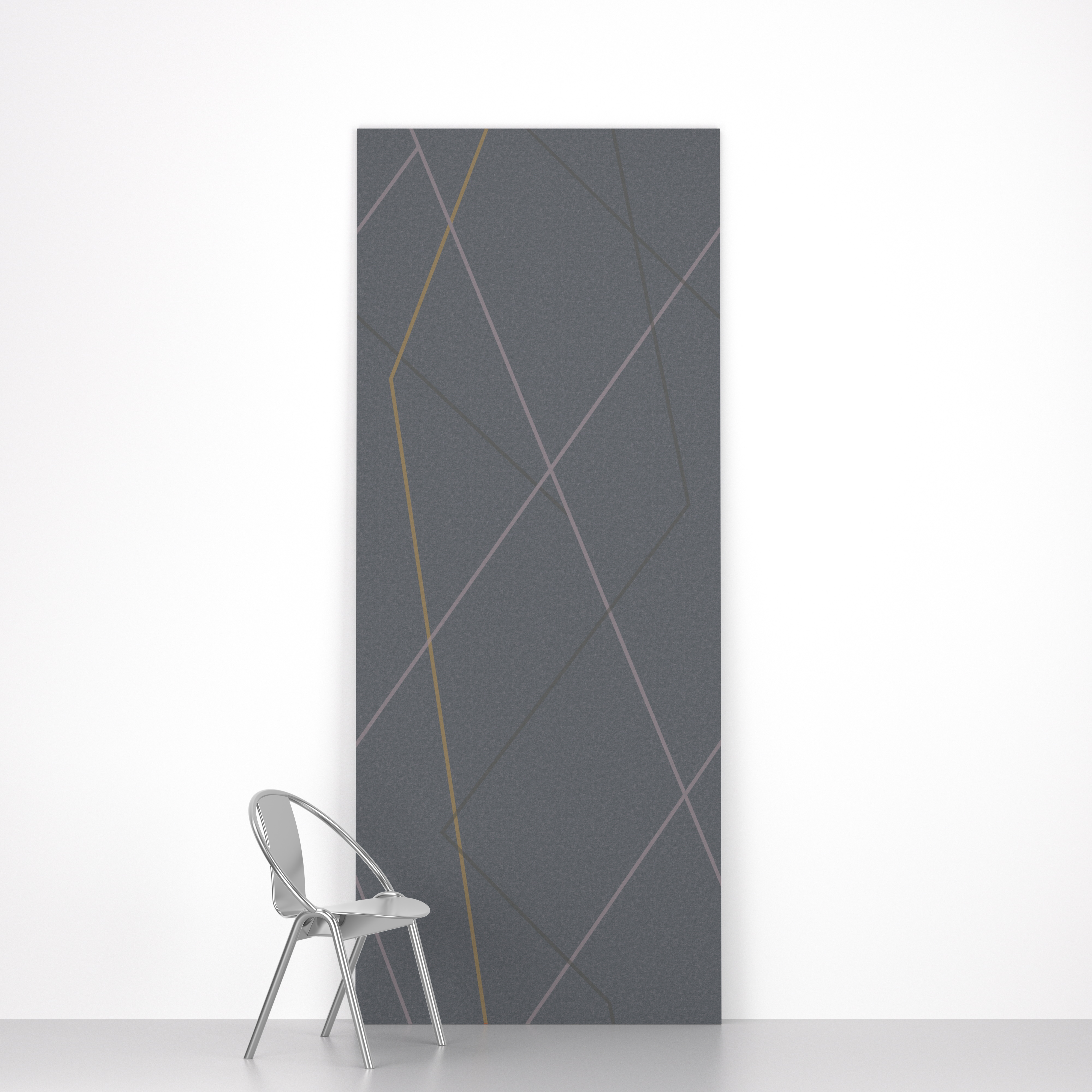 CONFIDENT ALONE, DESIGNED TO BE COMBINED: These bold graphic elements line up from panel to panel and are made to speak for themselves while keeping a lid on noise. Printed in large, dramatic scale, CROSS THE LINE is available in 6 colorways. CROSSCUT, its companion panel, is etched_carved from solid colors. Made from recycled PET felt (0.5"), Red List free with an NRC value of 0.45-0.9.