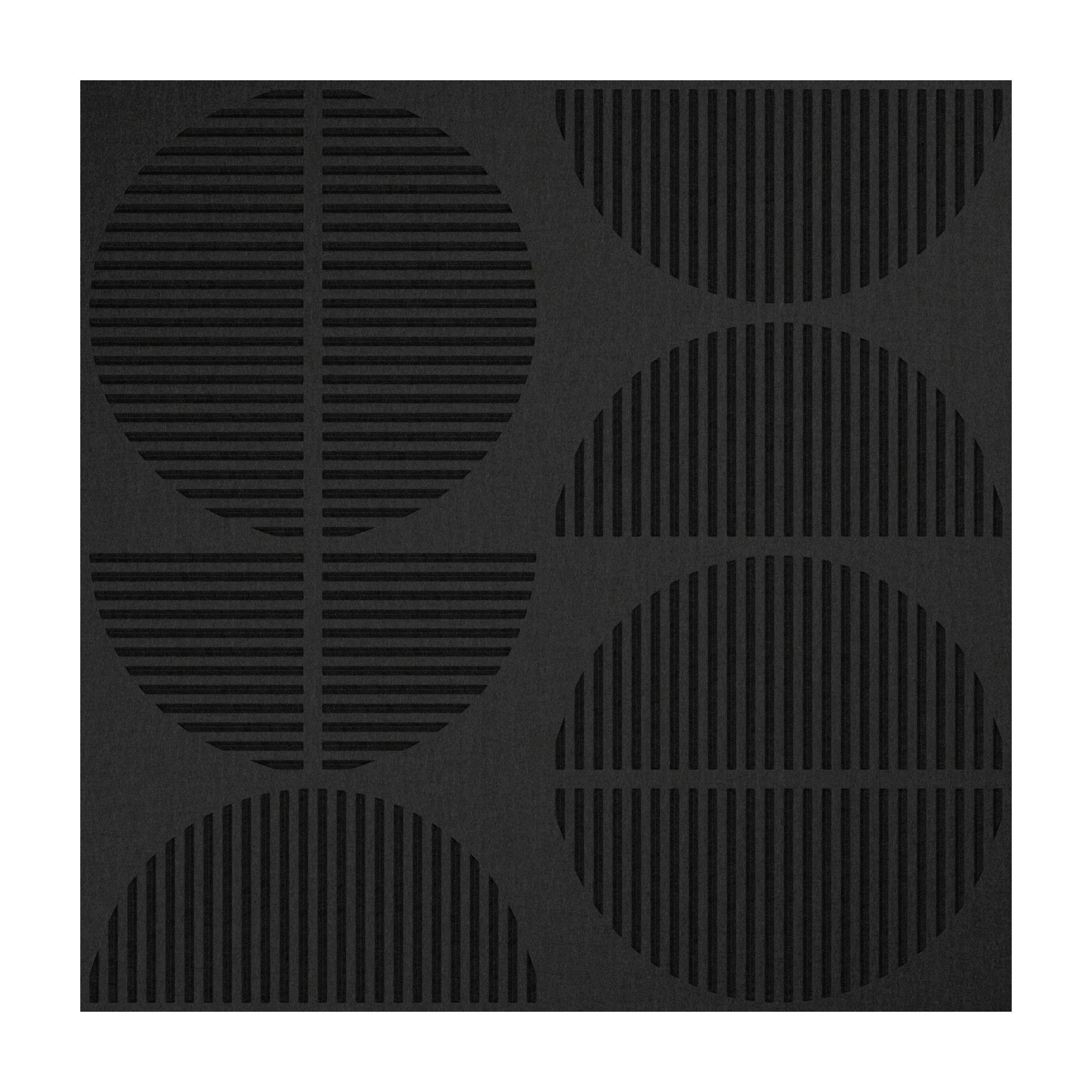 Large-scale pattern CIRC TILE is designed to instantly create a completely unique feature wall. Inspired by modernism and its geometric patterns, the graphic elements evoke movement and have an elegant subtlety by virtue of the etching technique. Made from recycled PET felt (0.5"), Red List free with an NRC value of 0.45-0.9.