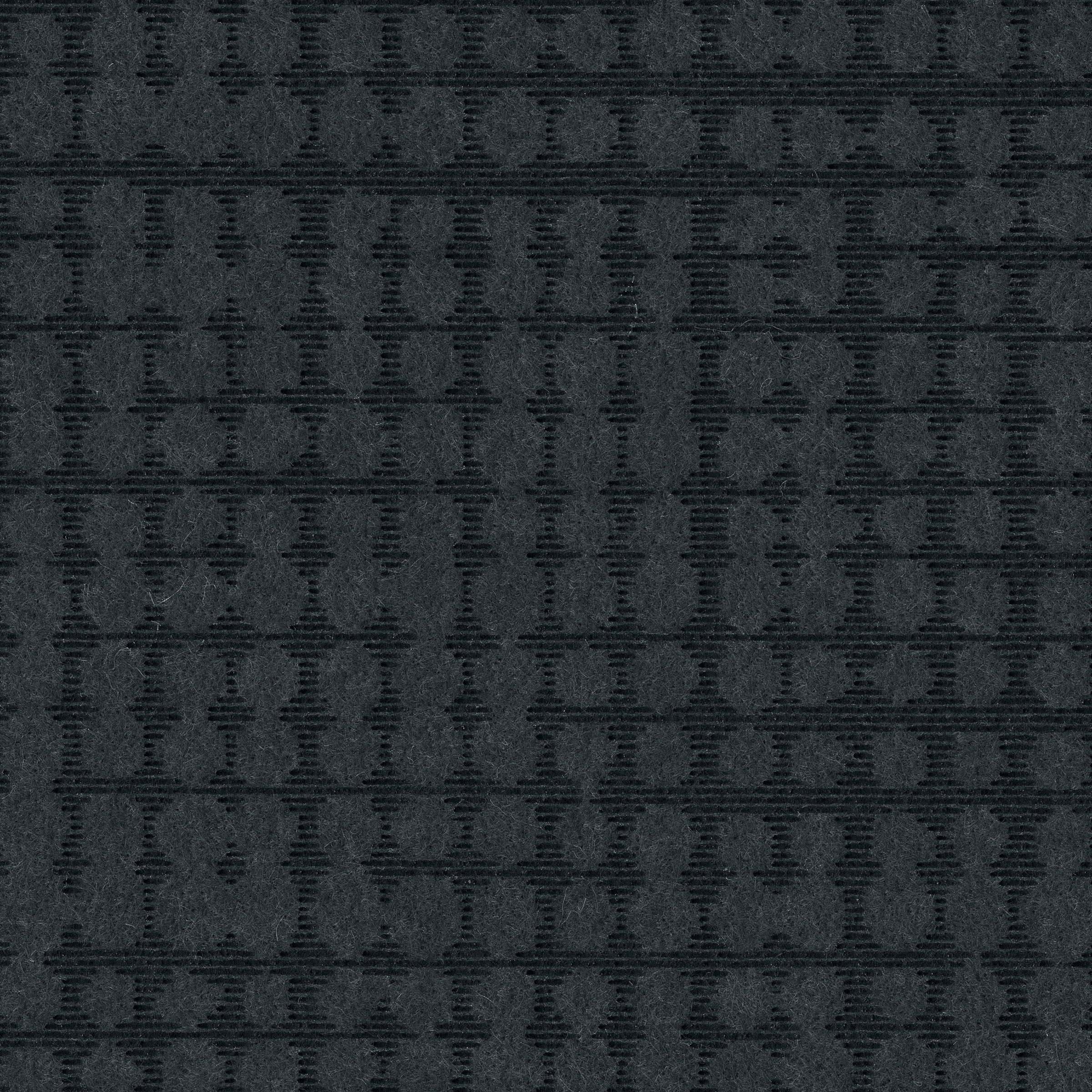 Seemingly random, yet visually calming, DARNING has certain handmade roughness, its pattern etched into recycled felt. The small-scale dot motif, created by light and heavy etched dashes, evokes hand quilting stitches or mended clothes, drawing a connection between the use of recycled materials and a practice of darning or repair, extending the useful life of a product.