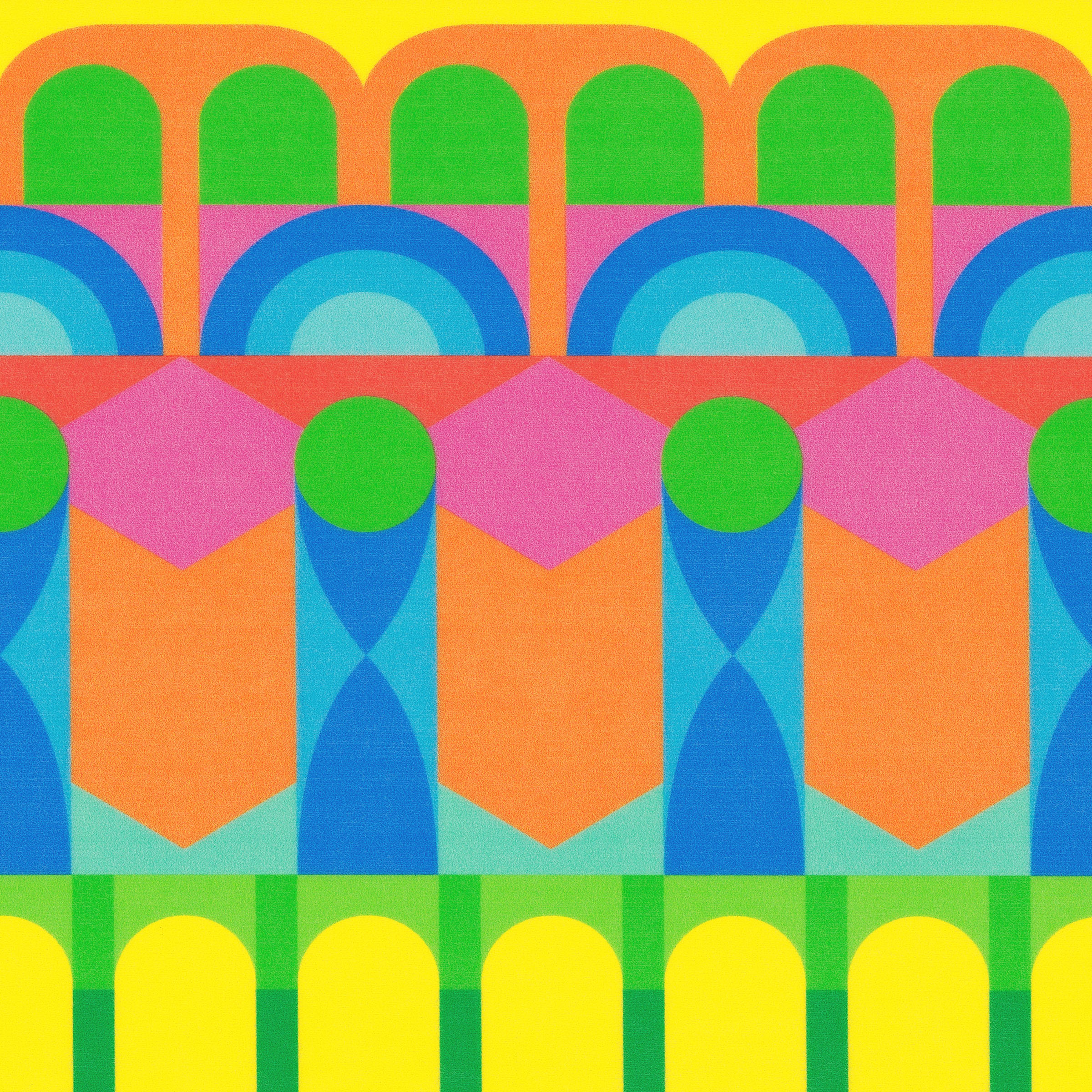 YINKA's exuberant medley of patterns and radiant colors uses the outstanding performance and cleanability of SILICA, making this pattern perfect for high-traffic use. This graphic is also offered as a wallcovering pattern of the same name _ magnified to a mural of colossal scale.