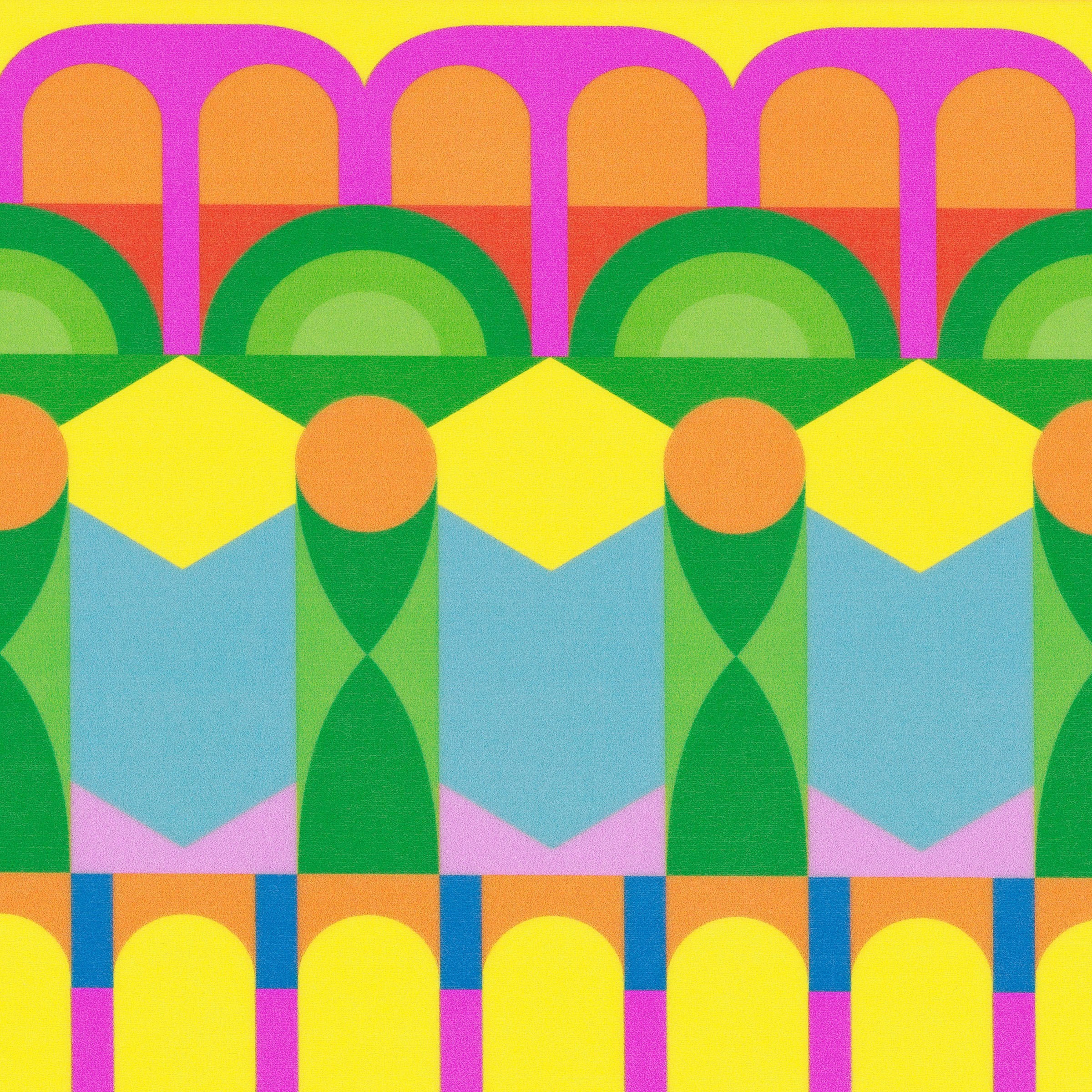 YINKA's exuberant medley of patterns and radiant colors uses the outstanding performance and cleanability of SILICA, making this pattern perfect for high-traffic use. This graphic is also offered as a wallcovering pattern of the same name _ magnified to a mural of colossal scale.