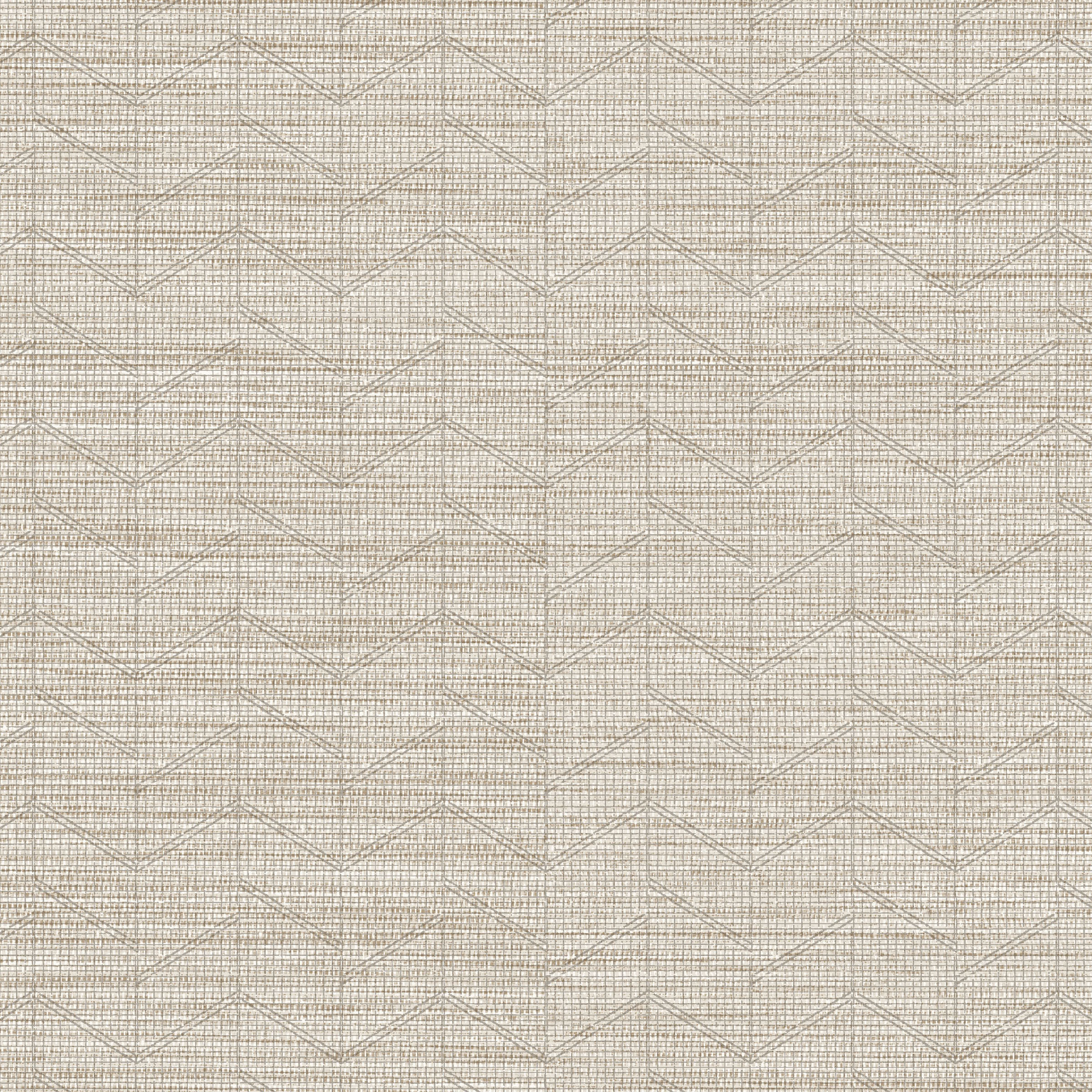 This geometric pattern on a silk weave canvas demonstrates how a bold design can function as an allover texture, balancing herringbone, chevron, and grid forms with irregular, rugged lines. The color palette, drawn from natural dyes and earth tones, adds calmness and grounds the palette.