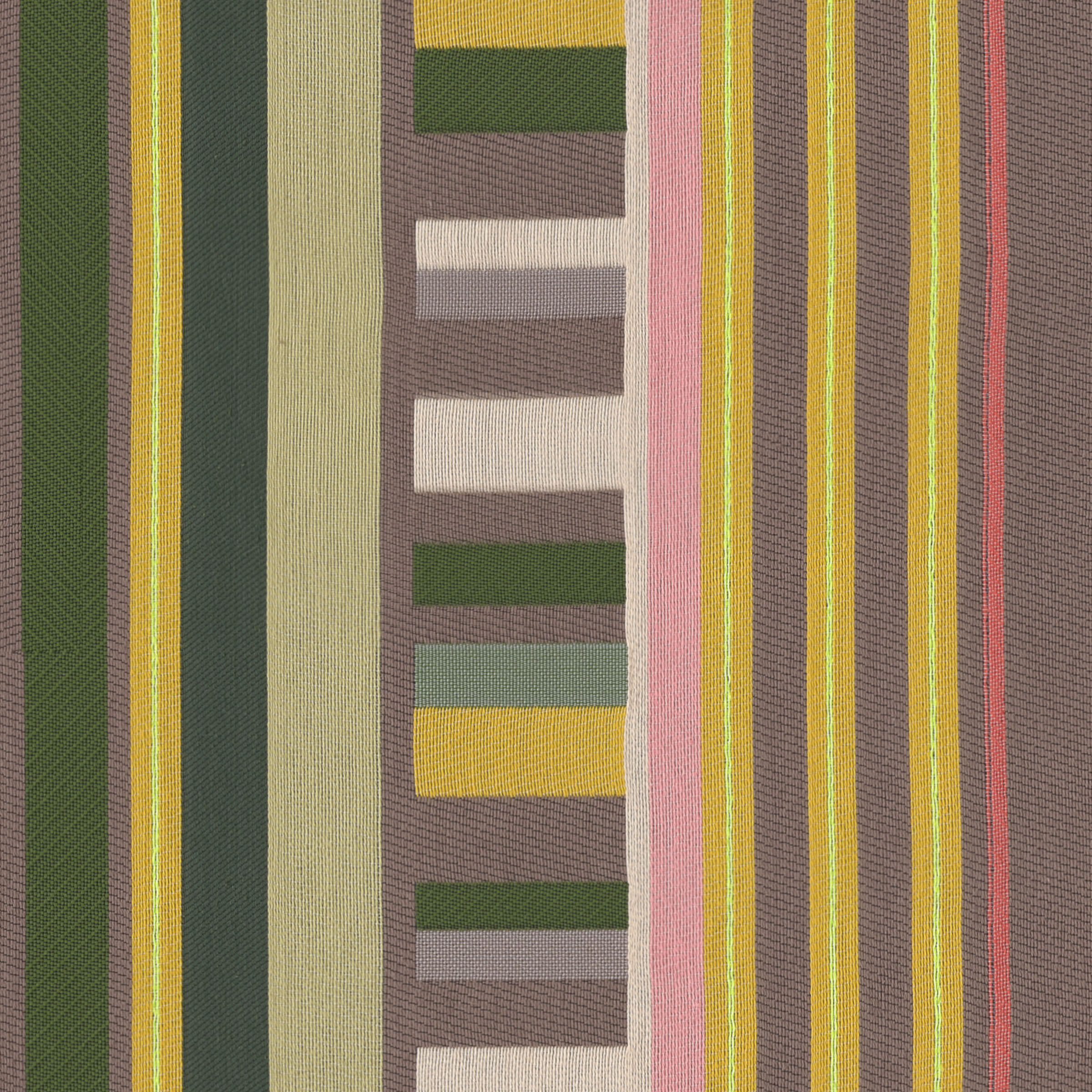 FRATTINI STRIPE represents a harmonious conversation of hues and rhythms, breaking boundaries with an expansive repeat and playful contrasts of positive and negative space. To achieve FRATTINI STRIPE, we pushed the limits of jacquard weaving, bending the rules to maintain performance while embracing a bold, playful spirit. Emanuela worked with up to 13 individual yarn colors per colorway, creating variations that allow her to capture the exact hues she envisions.