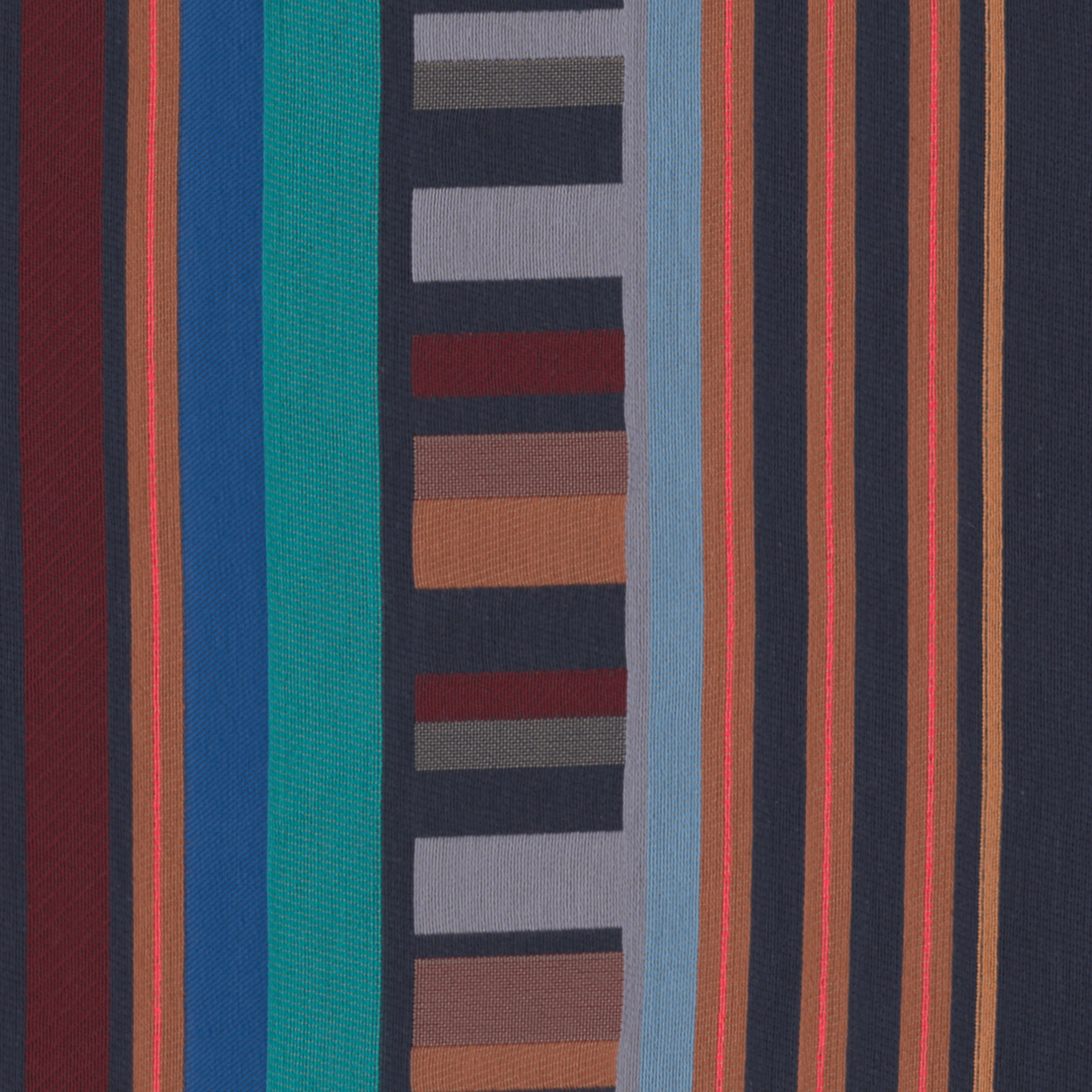 FRATTINI STRIPE represents a harmonious conversation of hues and rhythms, breaking boundaries with an expansive repeat and playful contrasts of positive and negative space. To achieve FRATTINI STRIPE, we pushed the limits of jacquard weaving, bending the rules to maintain performance while embracing a bold, playful spirit. Emanuela worked with up to 13 individual yarn colors per colorway, creating variations that allow her to capture the exact hues she envisions.
