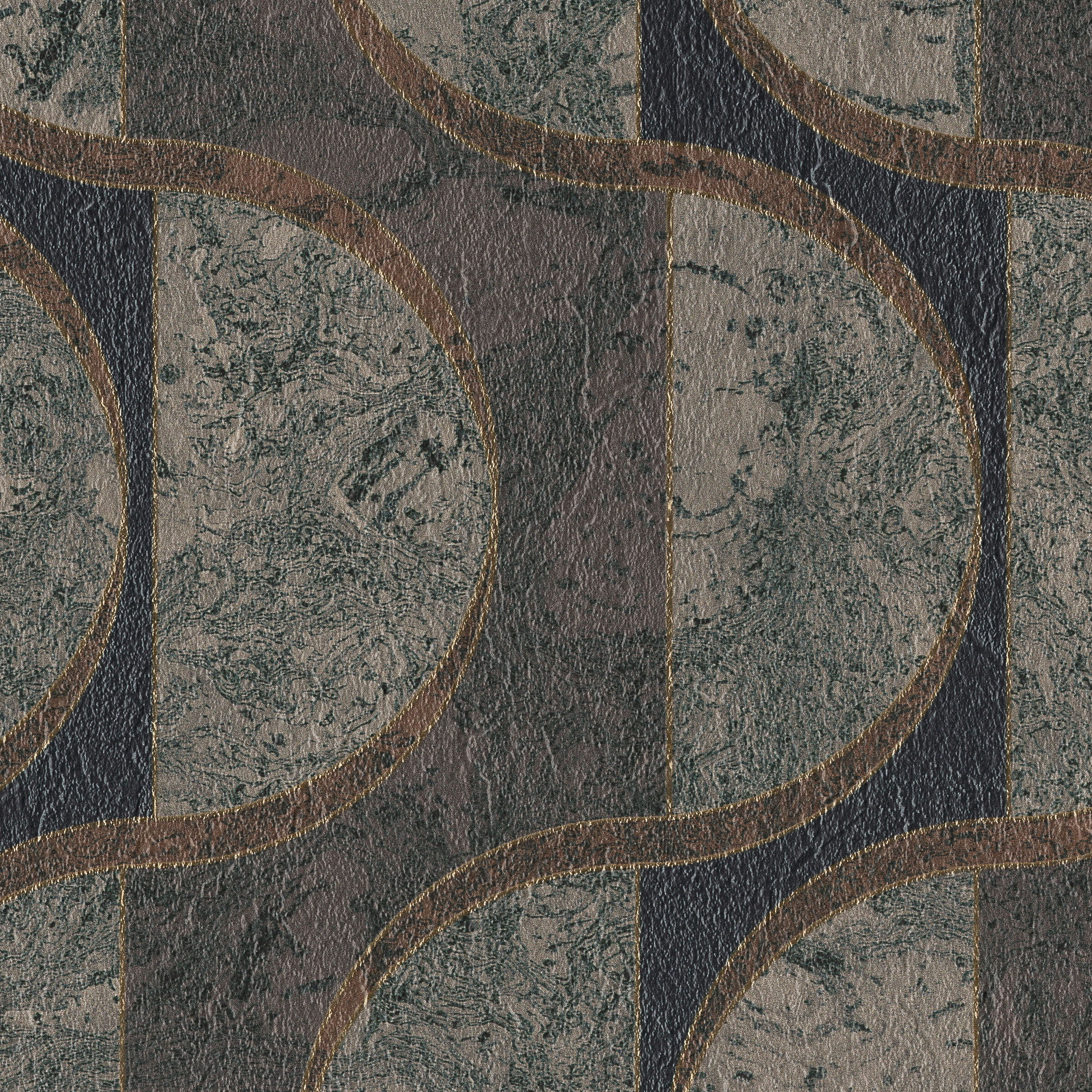 ROSSIO, inspired by Lisbon's historic Rossio Square, features a faux inlaid burled cork design with dynamic curves and rich metallic hues. Combining natural luxury with PVC-free, Type II performance, it's ideal for sophisticated hospitality spaces.