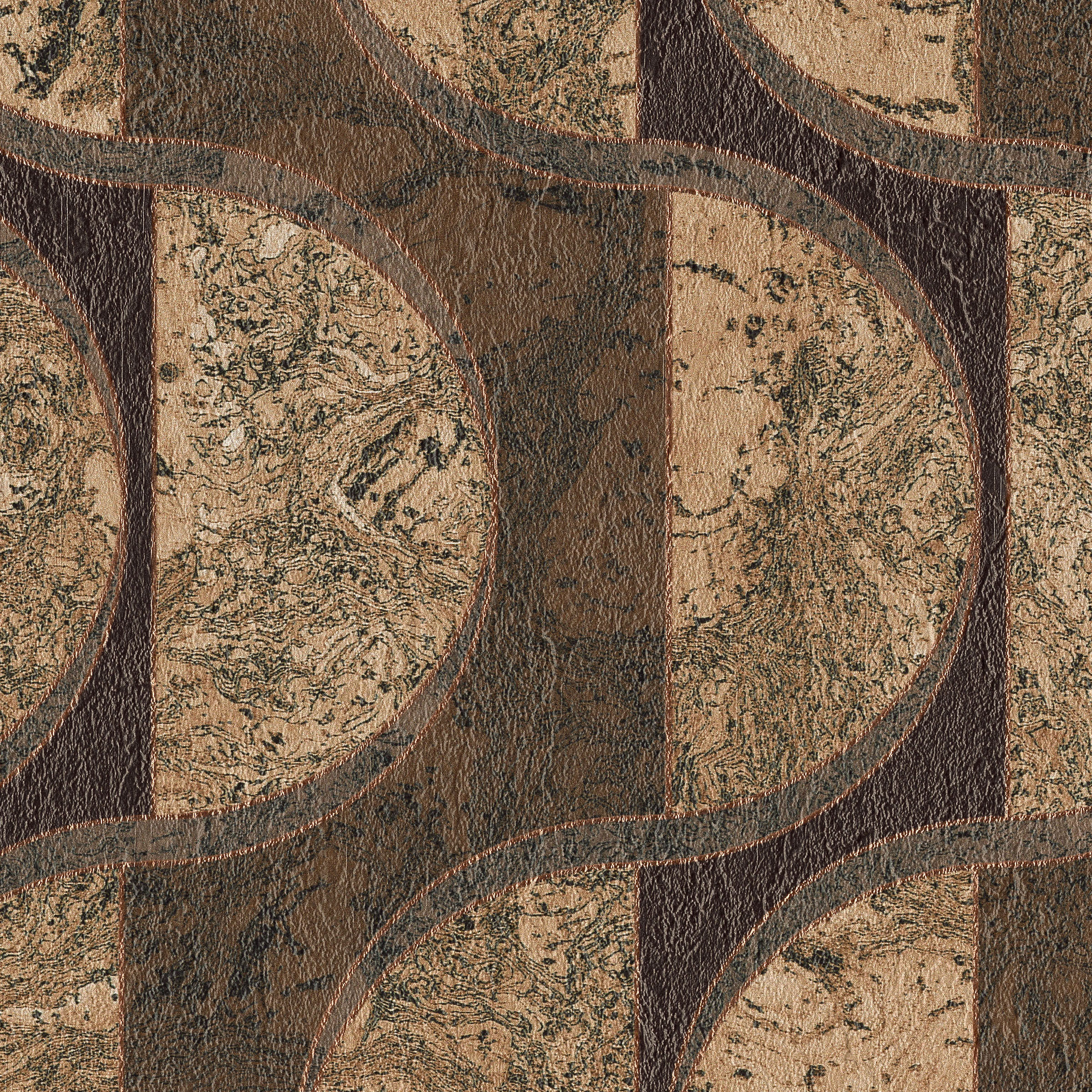 ROSSIO, inspired by Lisbon's historic Rossio Square, features a faux inlaid burled cork design with dynamic curves and rich metallic hues. Combining natural luxury with PVC-free, Type II performance, it's ideal for sophisticated hospitality spaces.