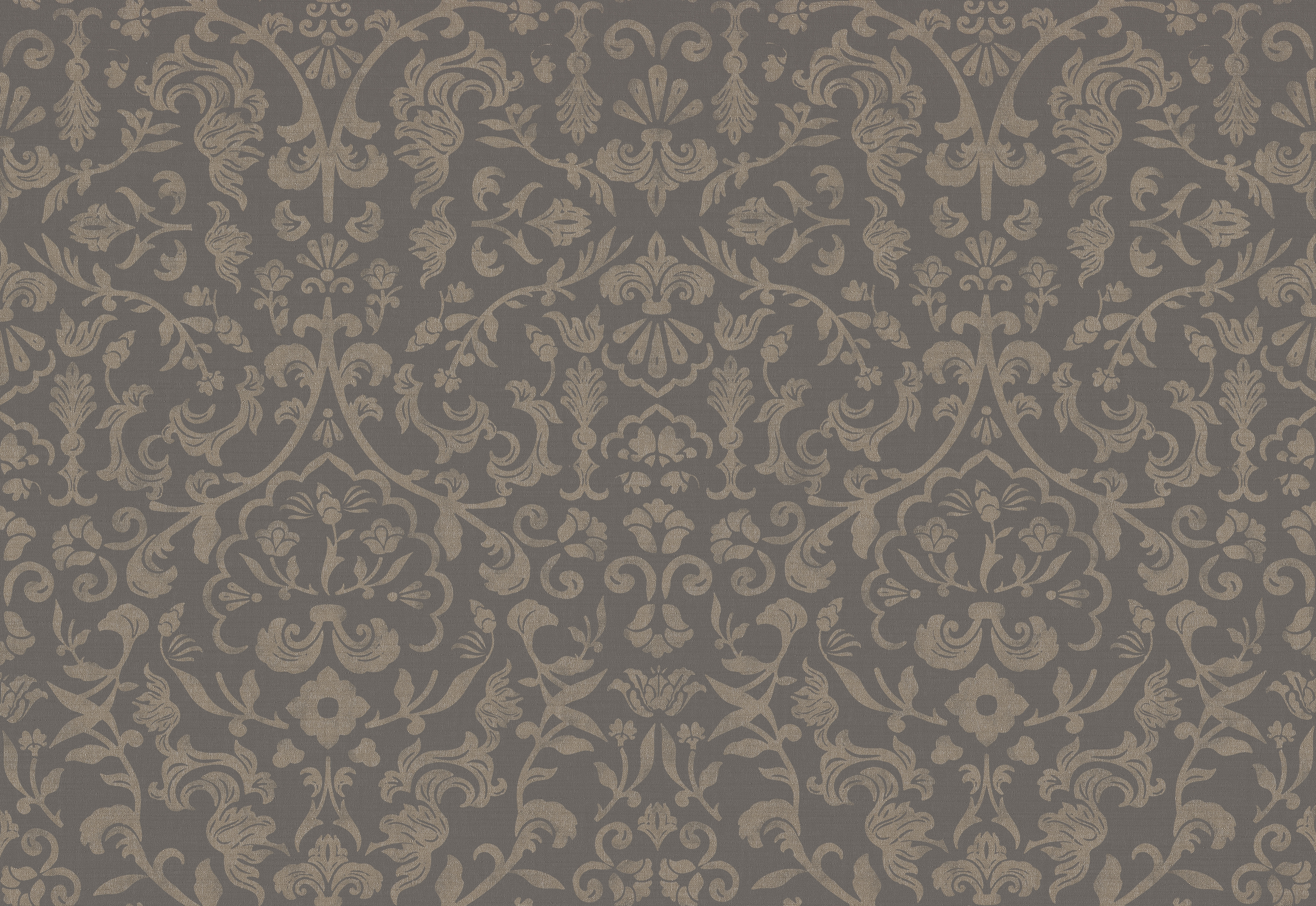 EMPRESS FILIGREE reimagines botanical damask with William Morris and Rococo influences. Flowing vines, scrolls, and floral motifs form a soft Regency-inspired framework, enriched by silk texture-evoking romantic gardens, timeless opulence, and stylized blooms.