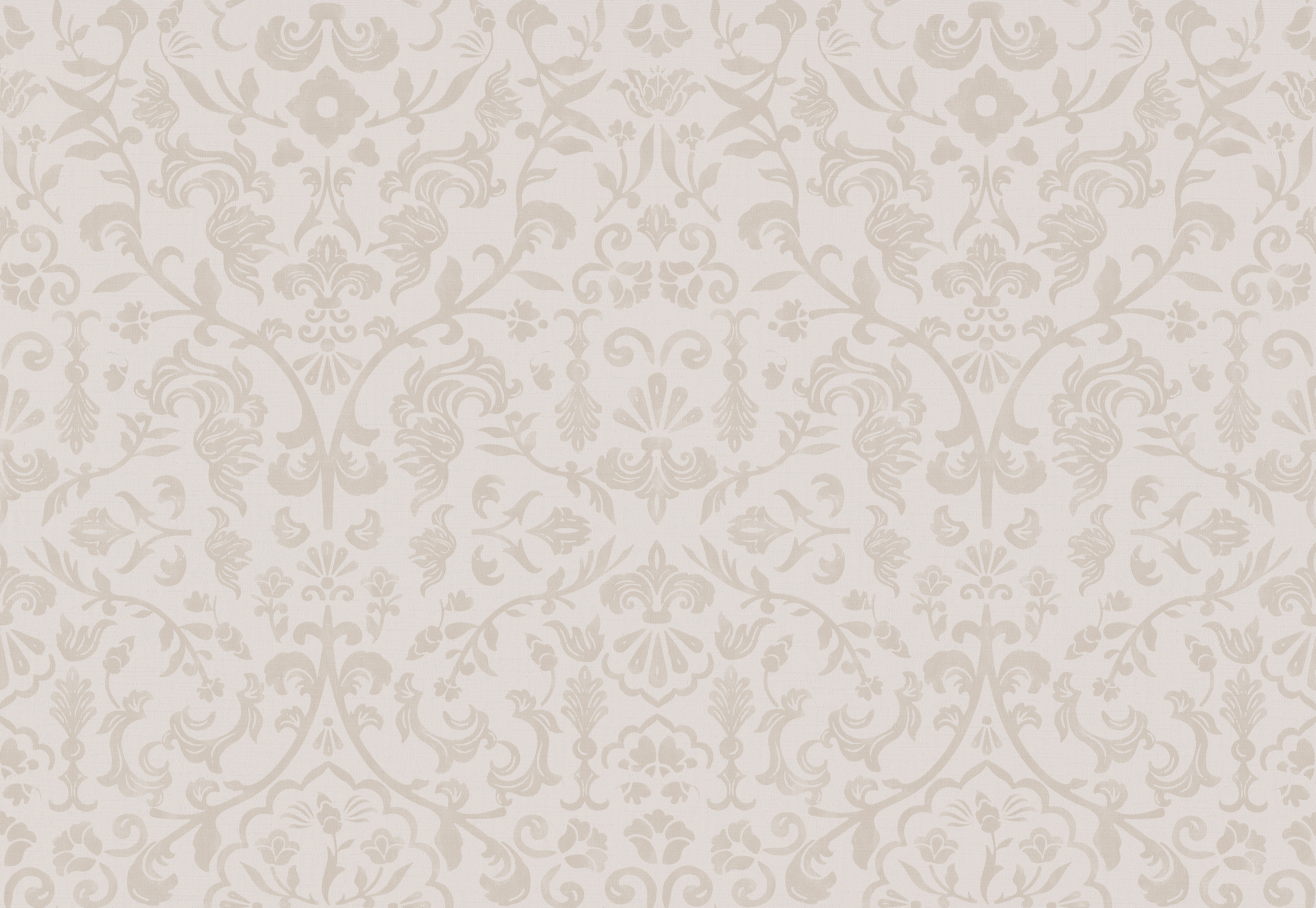 EMPRESS FILIGREE reimagines botanical damask with William Morris and Rococo influences. Flowing vines, scrolls, and floral motifs form a soft Regency-inspired framework, enriched by silk texture-evoking romantic gardens, timeless opulence, and stylized blooms.