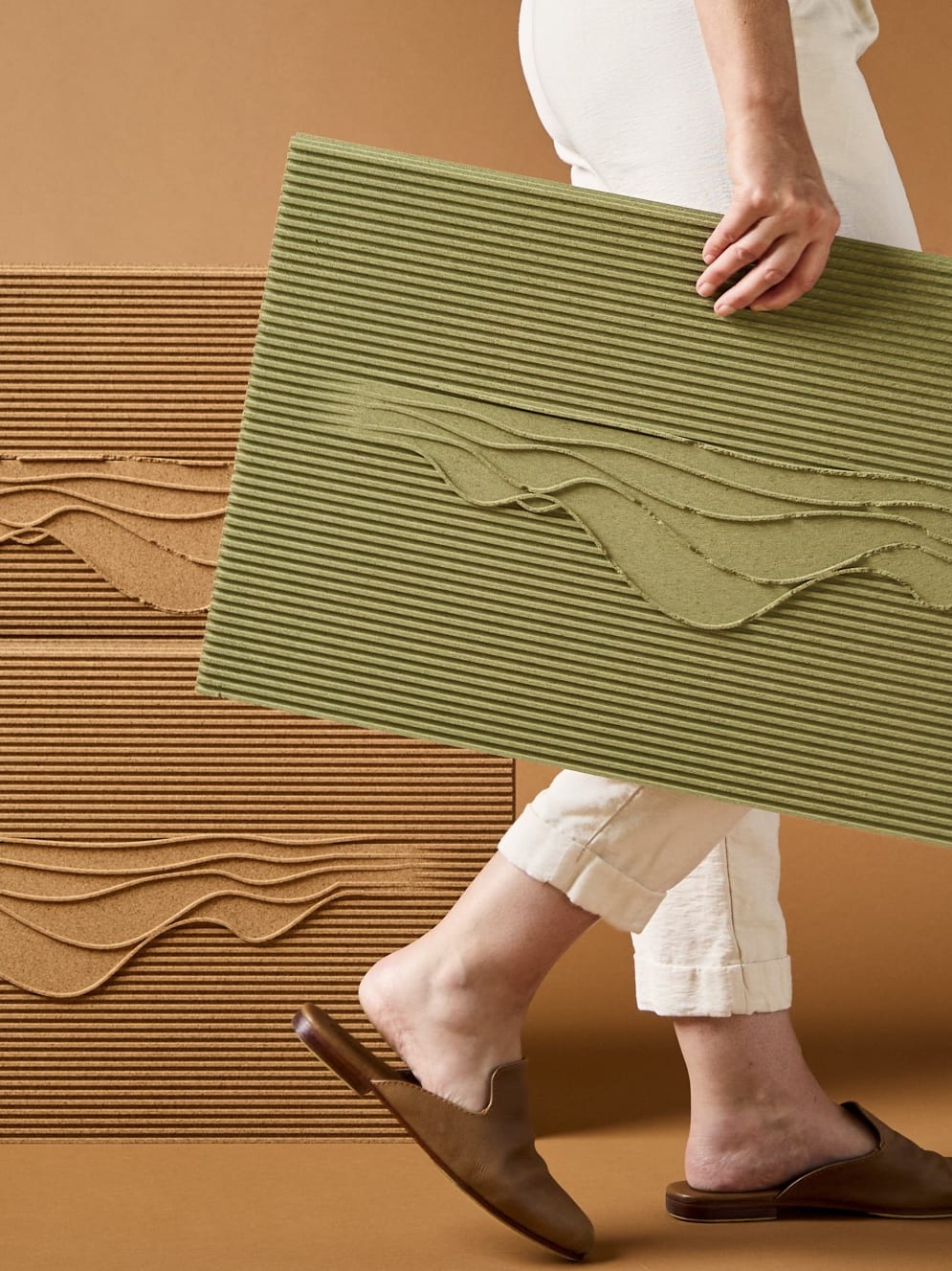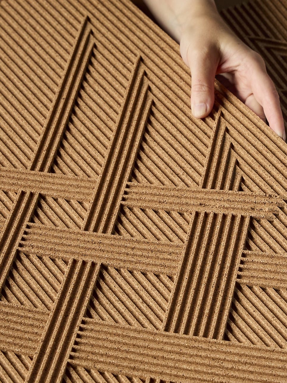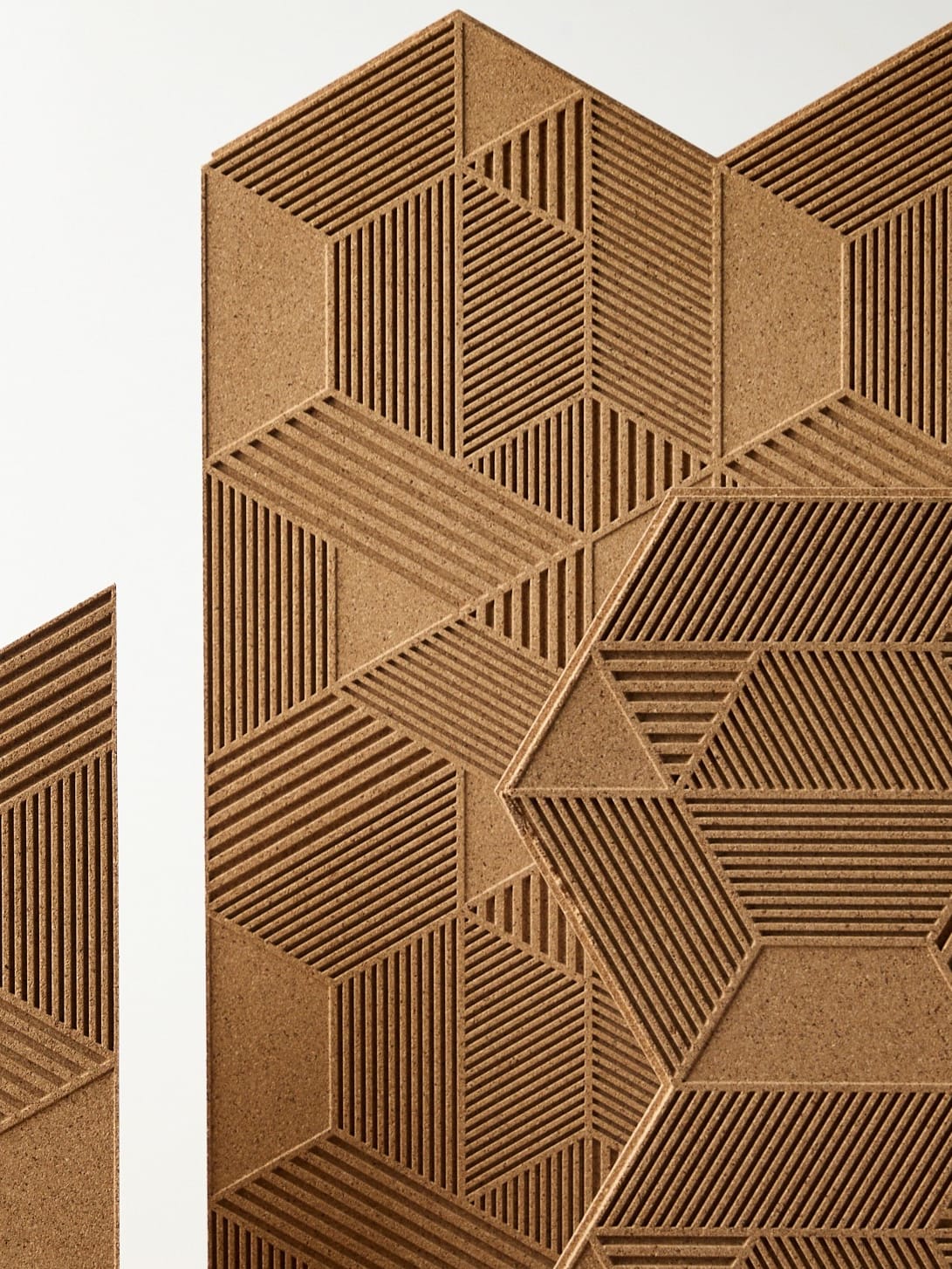 Renewable cork transformed—Organic Blocks and PrimeCork bring sculptural wall design with acoustic depth and sustainable integrity.